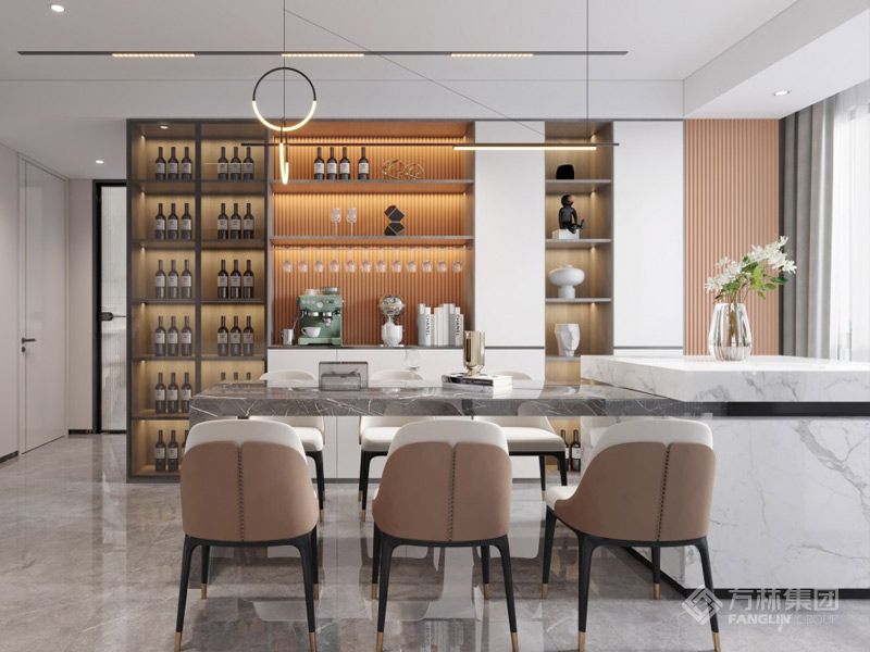 哈尔滨中海天誉136平轻奢装修效果图,在快节奏的社会环境下,抽离到回家模式,让自己回到最原始的状态得到放松。