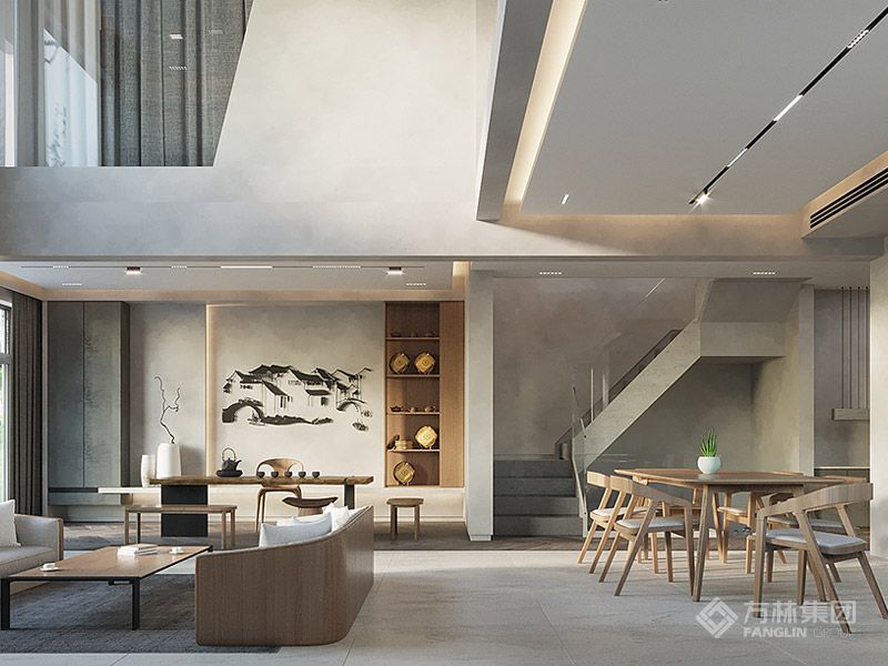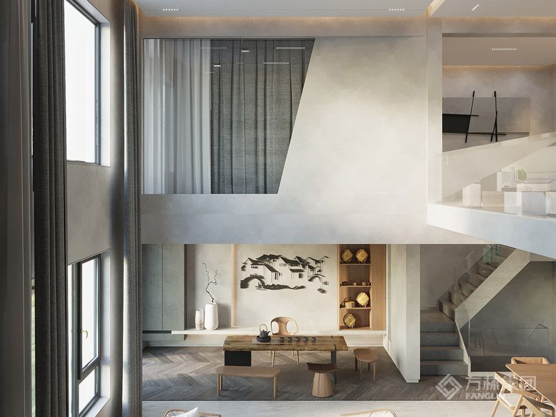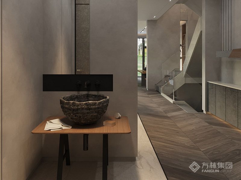 半岛首府340平别墅装修效果图,"侘寂风中的破旧感常常来源于一些故意做旧的质感,例如常常采用裸露的水泥、看似没有精细雕刻的木头、亚麻布料、藤条编织物和绿植。
