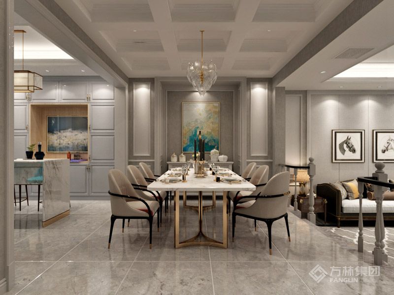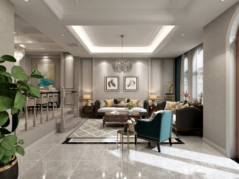 玫瑰湾珑岸别墅装修案例,色彩上,采用暖灰系作为主色调,整个空间弥漫着温馨低调的感觉,皮质沙发彰显品质的同时,也更易打理。
