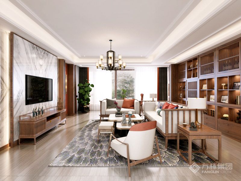 哈尔滨盛和世纪141平新中式装修案例,中国人喜寄情山水之间,是东方审美的基调,赋闲家中之时,即能享安逸雅致的平静生活。