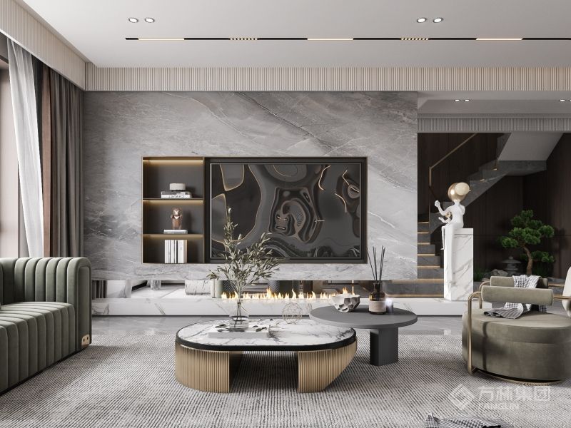 轻奢的风格,大多是以简约的硬装设计为基底,采用自带奢华气质的大理石、金属、玻璃、镜面等元素,为空间缔造出丰富的层次感,从而彰显了一种高品质的生活格调。