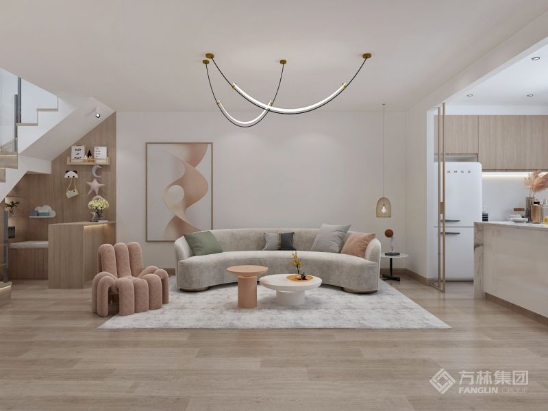 2层空间合理分化出私密区和会客区,楼梯下空间巧妙设计读书区,开放式厨房使空间更加宽敞,各处的小亮点设计更是让生活中充满惊喜