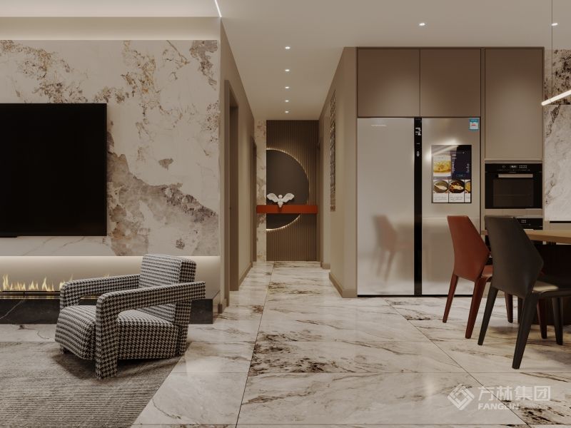 让灵感自由释放,创造一个心灵渴望的空间,全屋采用视觉冲击大理石纹配色效果,电视背景墙以及沙发背景墙色系搭配采用当下流行配色设计,卧室的简单设计但是不缺豪华采用最简单的方式搭配出更完美的效果。