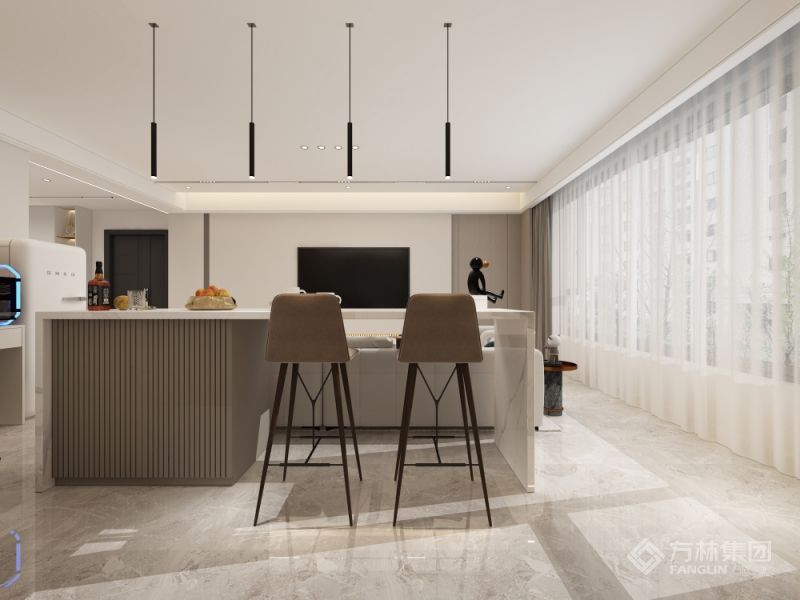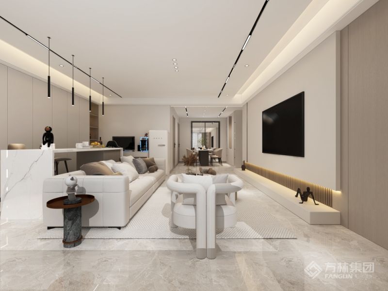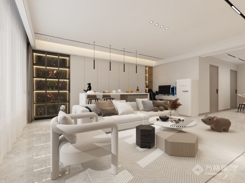 客户比较爱看小红书之类的软件,喜欢这种奶咖色系的感觉,要求客厅有一个电竞区,总体设计偏网红时尚一些,整体色系采用渐变感觉,个别空间点缀造型。