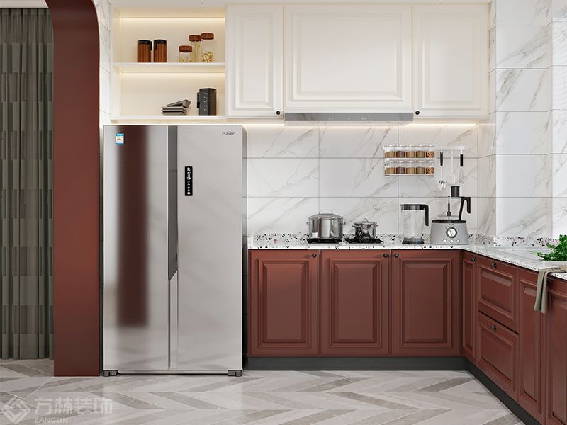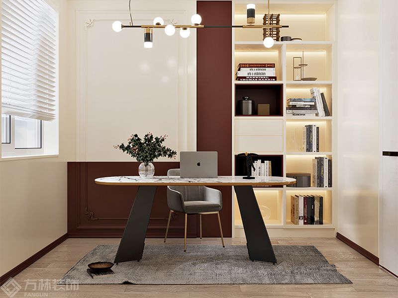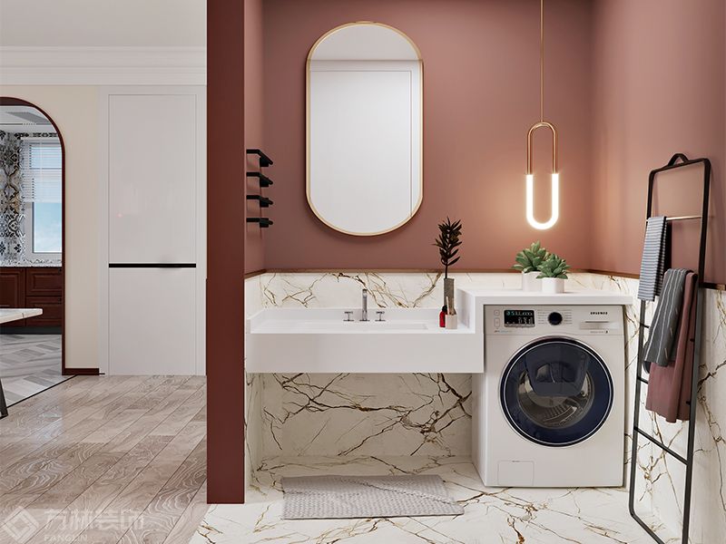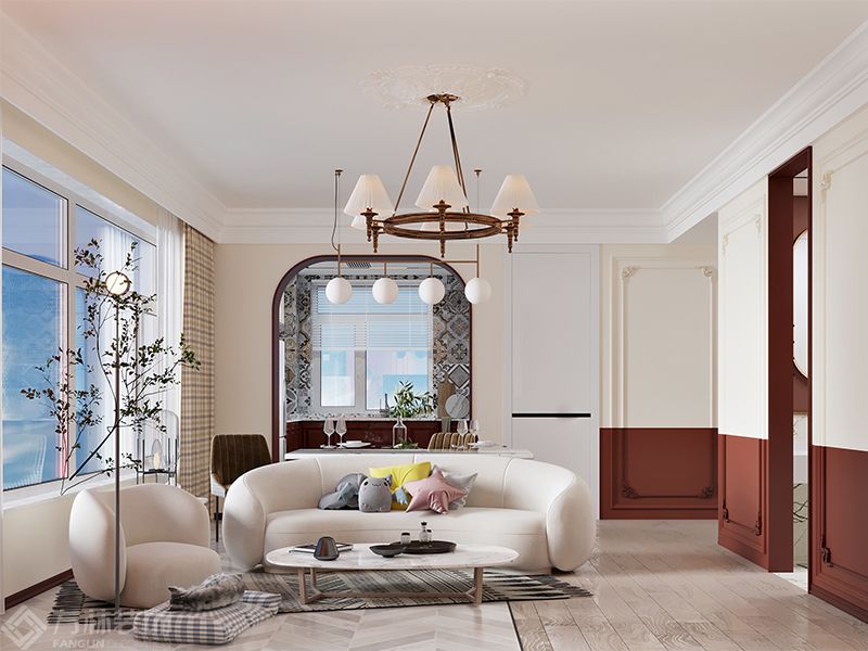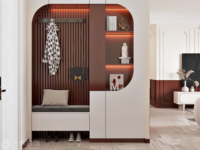 "面对厚重的法式文明,设计师选择以现代的简明线条勾勒,打造非惯性法式居所,让现代法式新生。入户玄关处,通透的玻璃屏风打造一个艺术小空间,主题颜色的不规则木艺勾勒出静止却灵动感的画面,桌子上的原版艺术家雕塑,椭圆的灯光,白色的瓷瓶与星点的小植被,会讲故事的设计师得心应手以材料与色彩营造空间氛围。 "