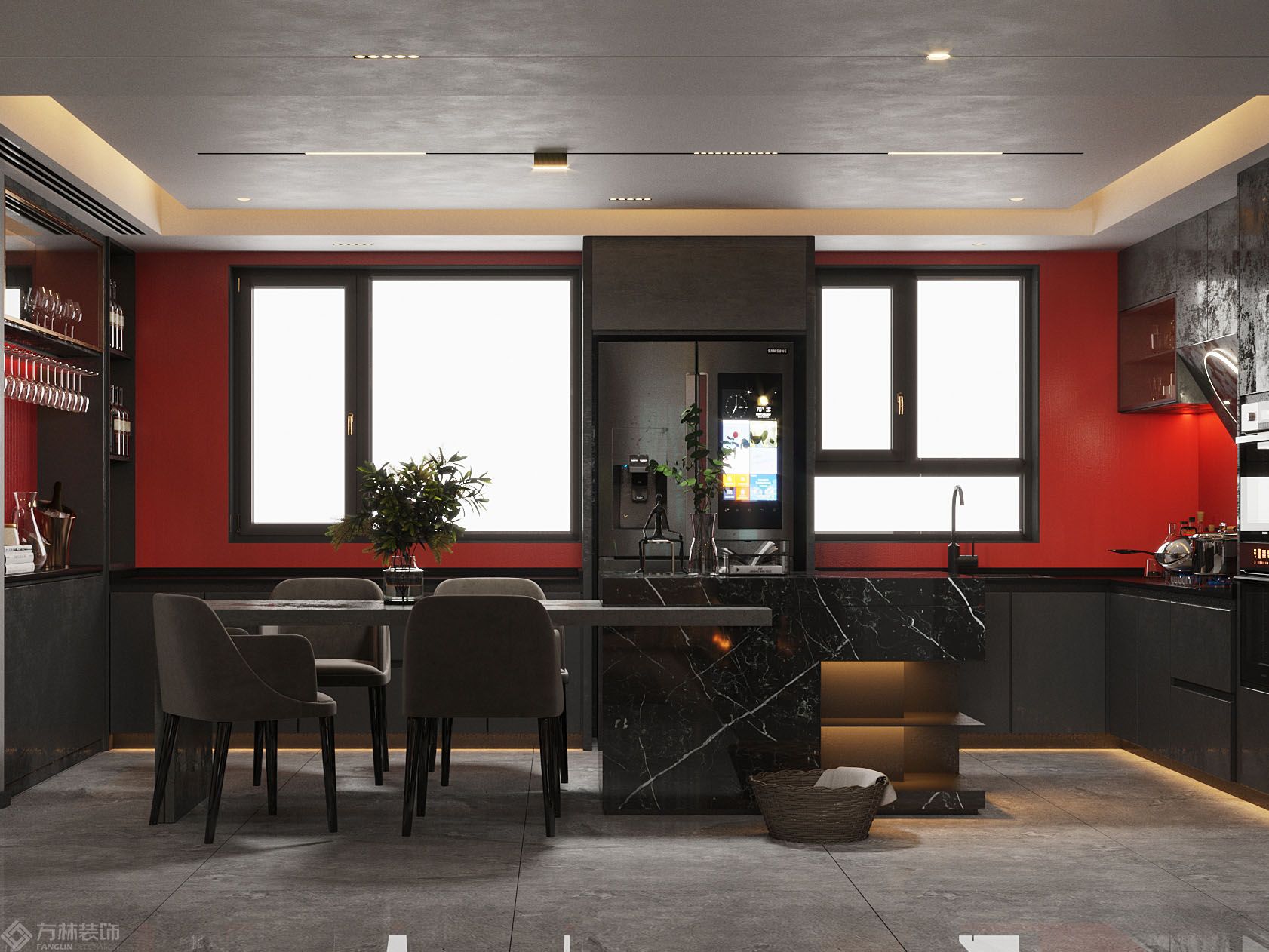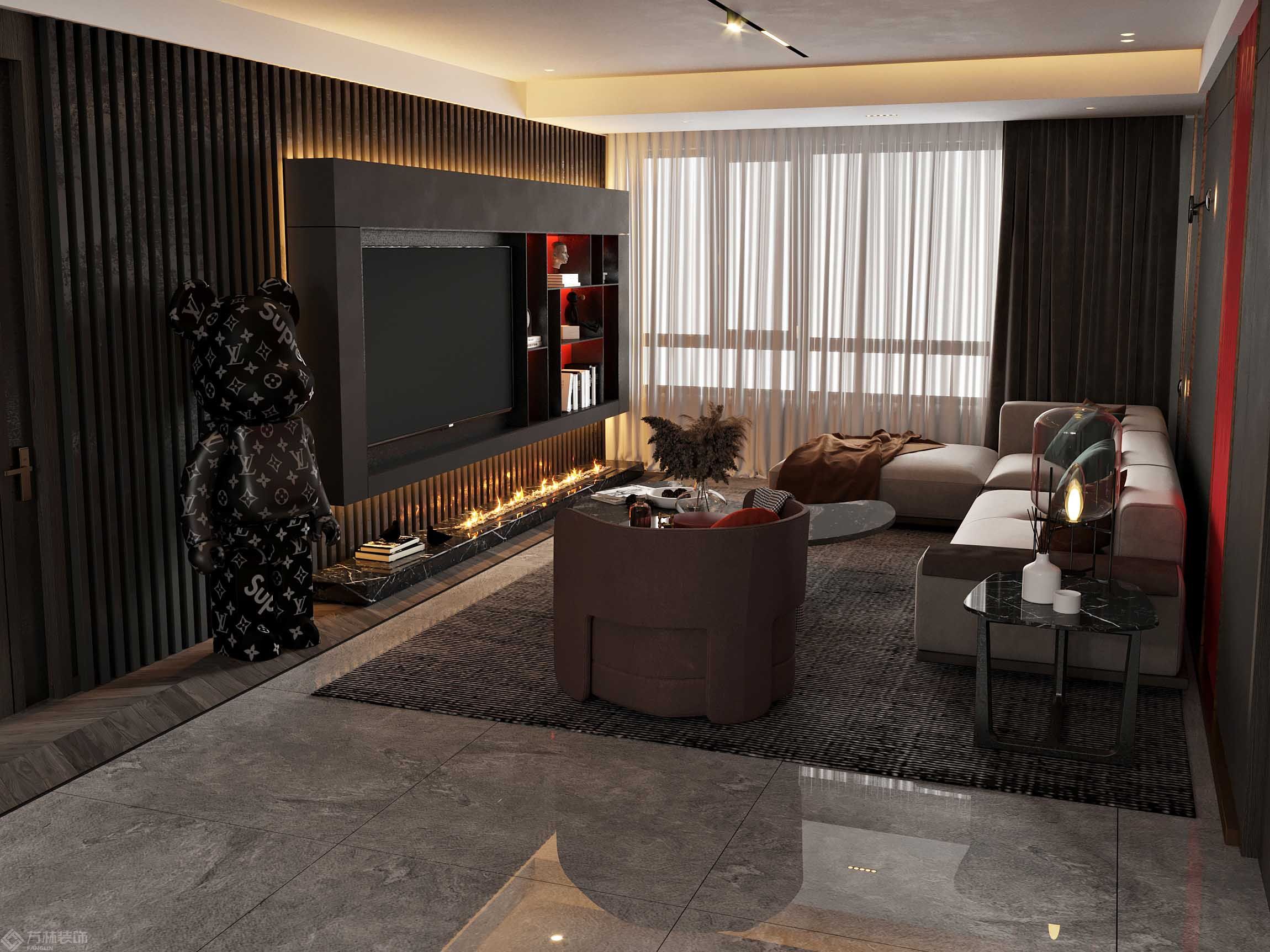本案以深调子为主,以红与黑为主题意在渲染一个时尚奢华的艺术空间。黑,是一种哲学,它代表了率真自信的质感,黑,个性鲜明,是最具视觉表现力的色彩,一直使我们乐于使用的元素之一。