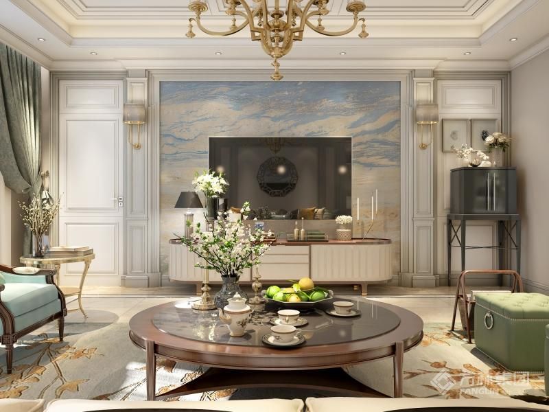 以莫兰迪色低饱和度的色彩感,让空间更为灵动且形成一个双主辐的艺术生活空间,整体色调温暖且克制,淡奶油色让空间采光视觉效果极佳。柔和的灯光蔓延于玉石背景墙上,墨意在玉石的沟纹中晕染渗透。天然材料的质感与无与伦比的手工艺,以岁月赋予古玉的美感呈现年代的价值,试图从小中见大,用当代的方式诠释时光的意义。