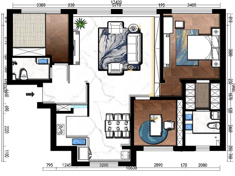 "在现代都市的生活中,人生就像一场场电影重播,每天过着和昨天重复的生活,平凡的生活中总是需要一抹不一样的色彩来点亮,本次设计则撷取生活中的一抹蓝,以现代港式风格为画笔,邂逅一场“五十度的蓝”。 "